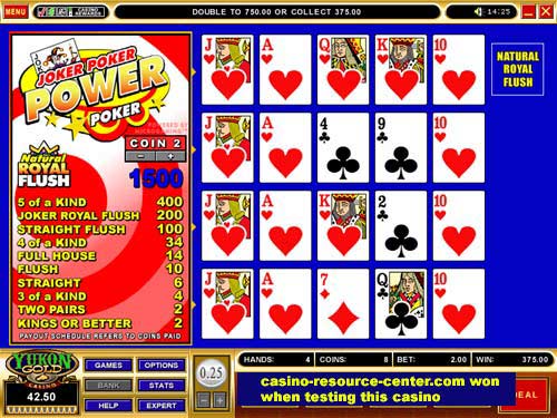 » $375.00 won at Yukon Gold Casino - Joker Poker Power Poker |