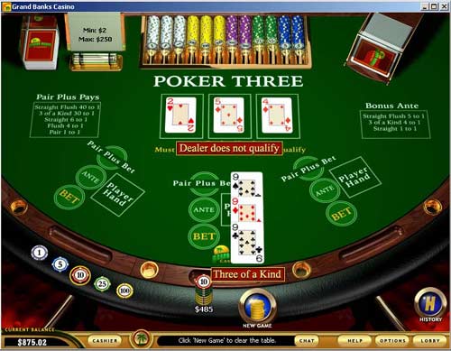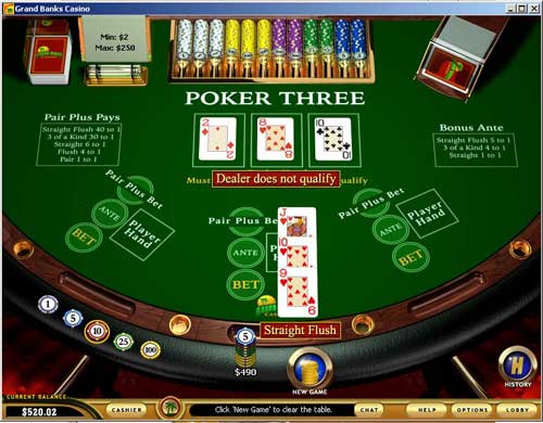 » $490.00 won at Grand Banks Casino - Poker Three |