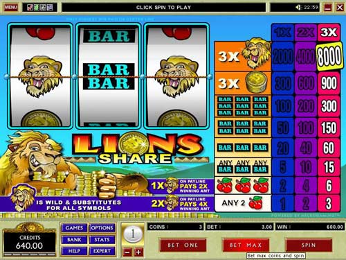 » $600.00 won at Colosseum Casino - Lions Share 3-Reel Slot |