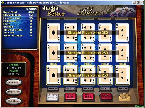 » $750.00 won at Global Player Casino - Jacks Or Better Triple Play Poker |