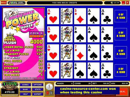 » $800.00 won at Yukon Gold Casino - Double Joker Power Poker |