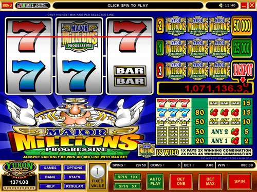 » $800.00 won at Yukon Gold Casino - Major Millions Progressive Slot |